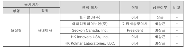 윤 부회장은 슬롯 사이트홀딩스 대표이사 부회장외에 한국슬롯 사이트(주) 부회장, 비상근으로 석오캐나다 대표, HK이노버스 USA 등 모두 6곳에서 이사직함을 갖고있다.